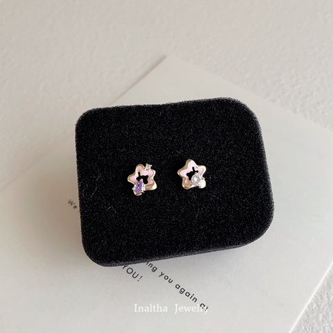 🇰🇷18K玫瑰金鑲四葉草鋯石耳針/耳夾